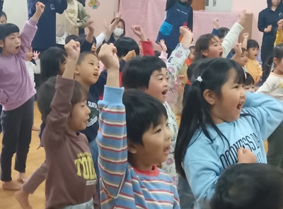 「森の教室」は「森の教室・どんぐりくんと森の仲間たち」のキャラバン隊が、保育園を訪れ、約1時間30分のイベントを行いました。