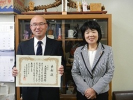三朝町大瀬の大瀬(おおぜ)造林組合が「令和7年度中国・四国地区緑化功労」を受賞され、令和7年10月23日(木)に広島市で開催された「第72回中国・四国地区緑化推進協議会」内で表彰式が行われました。 令和7年11月21日(金)に鳥取県中部総合事務所長室にて木本美喜中部総合事務所長から大瀬造林組合山崎政一組合長へ表彰状の伝達式が行われました。 大瀬造林組合では、26年間にわたって、地域の森林の間伐や苗木植栽などの整備活動のほか地域の児童を対象とした森林環境教育などに取り組んでいることが評価されました。
