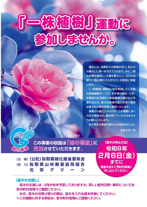 「一株植樹」運動について、苗木一覧、注込書等 ↓↓↓ 下記チラシをご参照ください。