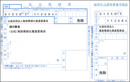 「緑の募金」ゆうちょ銀行払込取扱票用紙 記入例