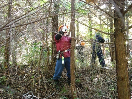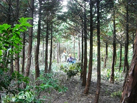 森っ子倶楽部の今年最後の活動は、11月17日(土)に大山町束積(旧中山町)で実施されました。 会員等20名余が参加し、約0.3ヘクタールのヒノキ林の枝打ちを行いました。 3時間余りの熱心な作業で、見違えるほどきれいなヒノキ林に整備できました。 ご協力ありがとうございました。