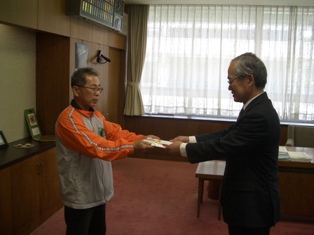 5月22日(木) 県議会議長室に於いて、コカコーラウエストスポーツパーク園長の青木善美様より当委員会理事長 鉄永幸紀県議会議長へ、コカコーラウエストスポーツパークで行われた緑の感謝祭の収益の一部を「緑の募金」へご寄付いただきました。