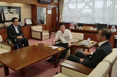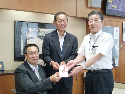 8月1日(火)千代三洋工業株式会社様より「緑の募金」へのご寄付があり、県議会議長室に於いて、代表取締役社長山田哲様、社員代表として本家浩之様、総合企画部管理課担当課長飯田陽平様より当委員会理事長(稲田寿久県議会議長)へ贈呈していただきました。