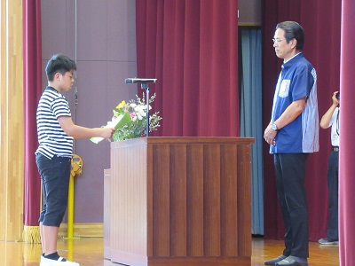 お礼の言葉(児童代表:中川風獅君)