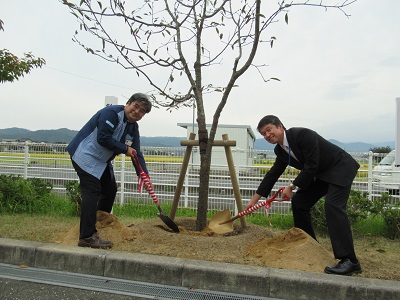 学校環境緑化モデル事業に令和元年度取り組んでいた、鳥取市立桜ケ丘中学校について事業が完了し、10月17日(木)に完成式が行われました。(樹木の剪定、桜の記念植樹)