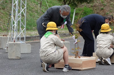 その後、根雨小学校みどりの少年団5名が「森林・みどりへの想い」を発表し、皆さんから多くの拍手が送られました。 当委員会では、緑化苗木(ミツバツツジ)250本の無料配布を行い、好評を得ました。ありがとうございました。