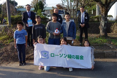 学校環境緑化モデル事業に取り組んでいた倉吉市立社小学校において、この事業(サクラ・モミジ・コウヤマキ・モッコク・キンモクセイ・ケヤキなどの枝落とし、剪定、看板の設置)が完了し、11月10日(木)に完成式典が行われました。 本事業は、株式会社ローソンが店頭で集めた募金から緑と水の森林ファンド事業への寄付金を活用して実施しています。これを財源として各県の緑化推進委員会を通して、緑化事業を希望する小学校に助成される事業です。 令和4年度は全国で77校が採択されました。 |