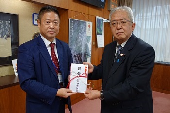 12月12日(火)株式会社新日本海新聞社様から「緑の募金」へのご寄付があり、鳥取県議会議長室において、地域プロデュース局局長 遠藤一郎様、地域プロデュース局PR推進課 神田浩史様より当委員会理事長(浜崎晋一県議会議長)へ贈呈していただきました。